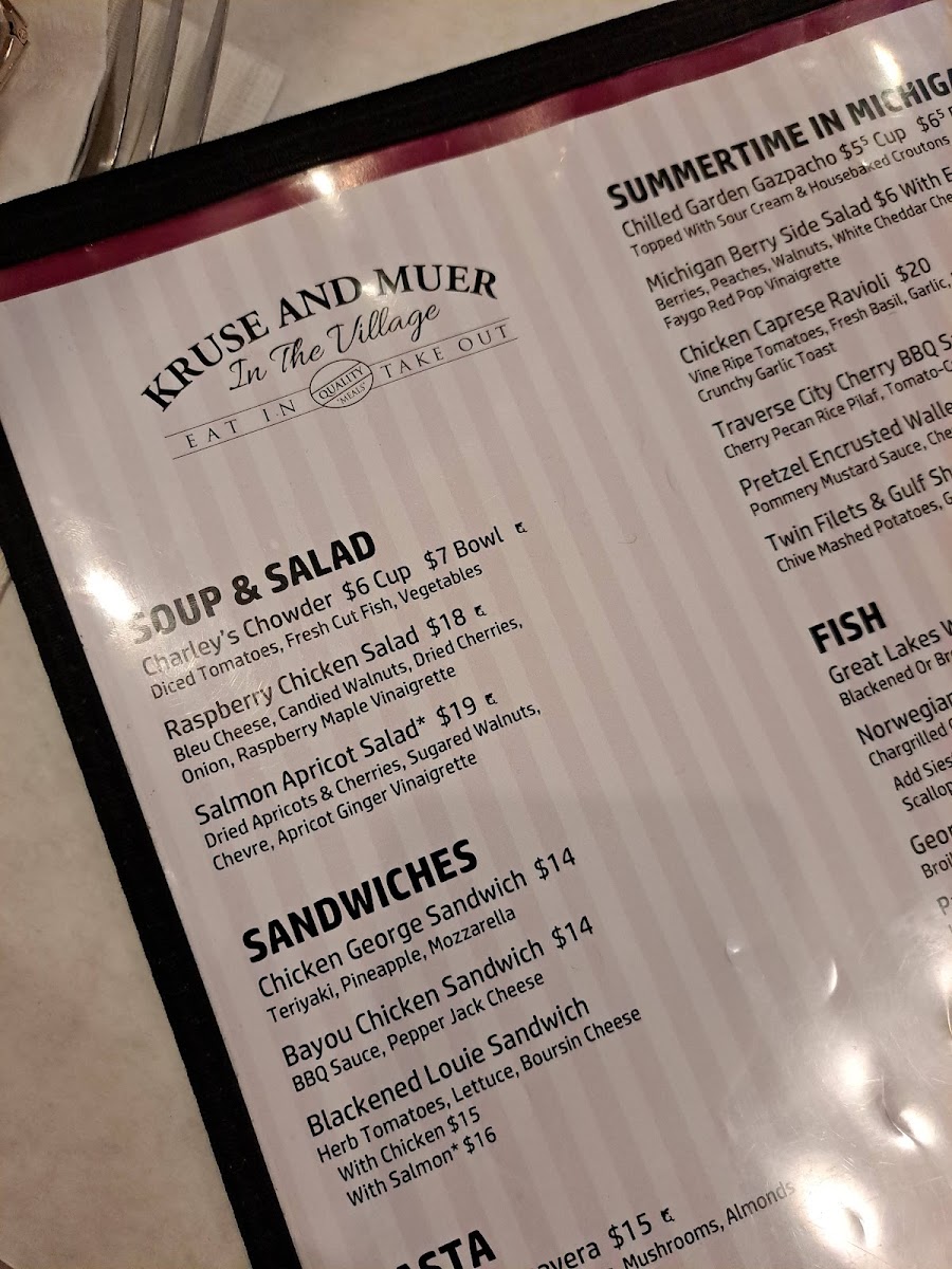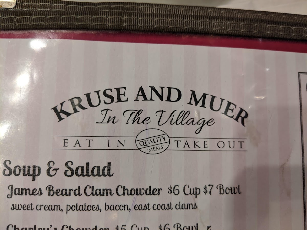 Kruse & Muer in the Village Menu