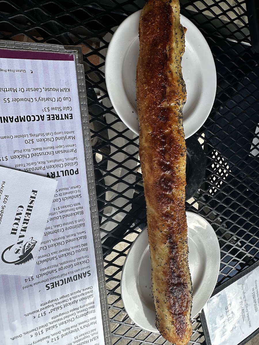 Gluten-free available. 3/4 of a slab, garlic toast, macaroni and cheese.